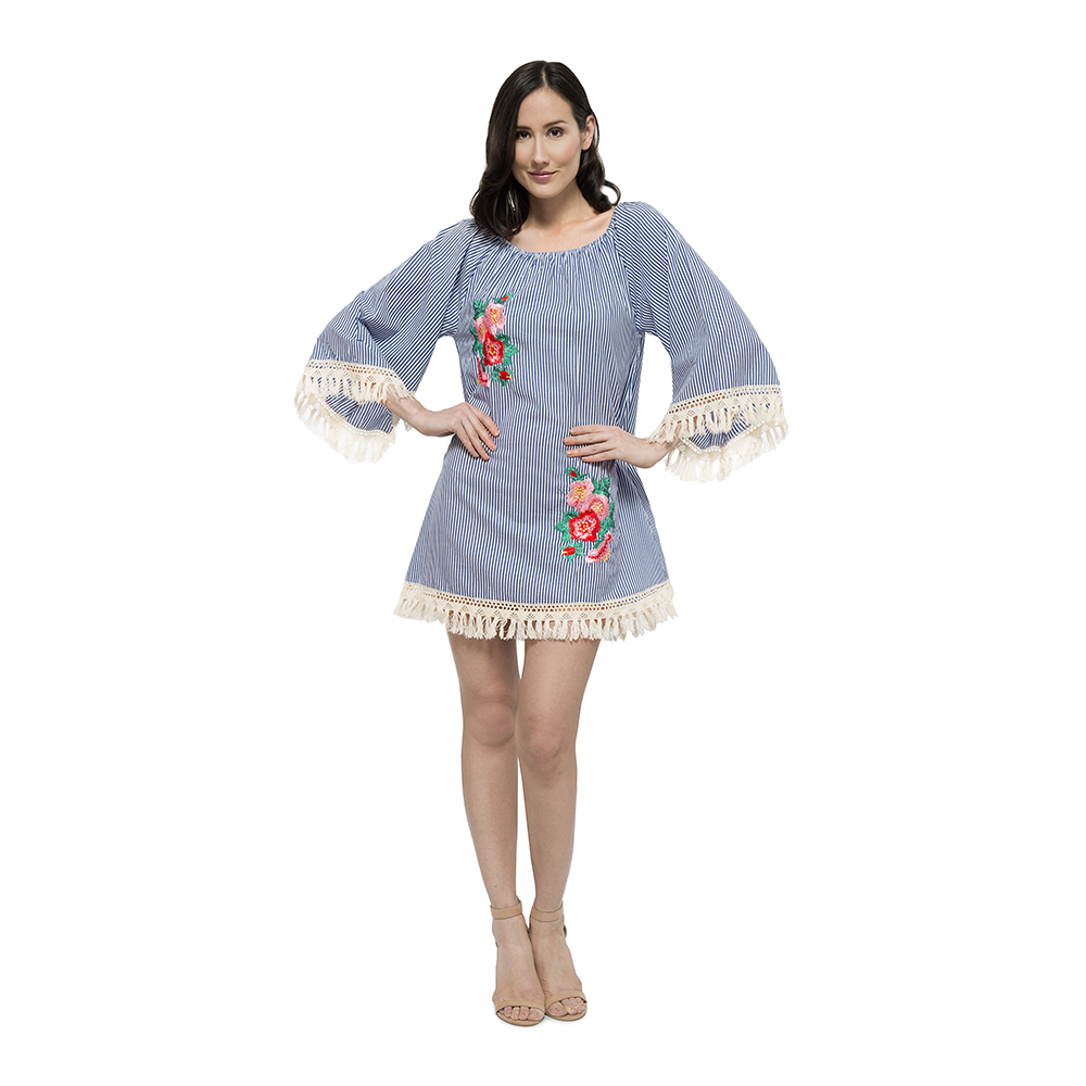Vestido Corto Mujer Moda ,Vestido Moda Rayas y Bordado